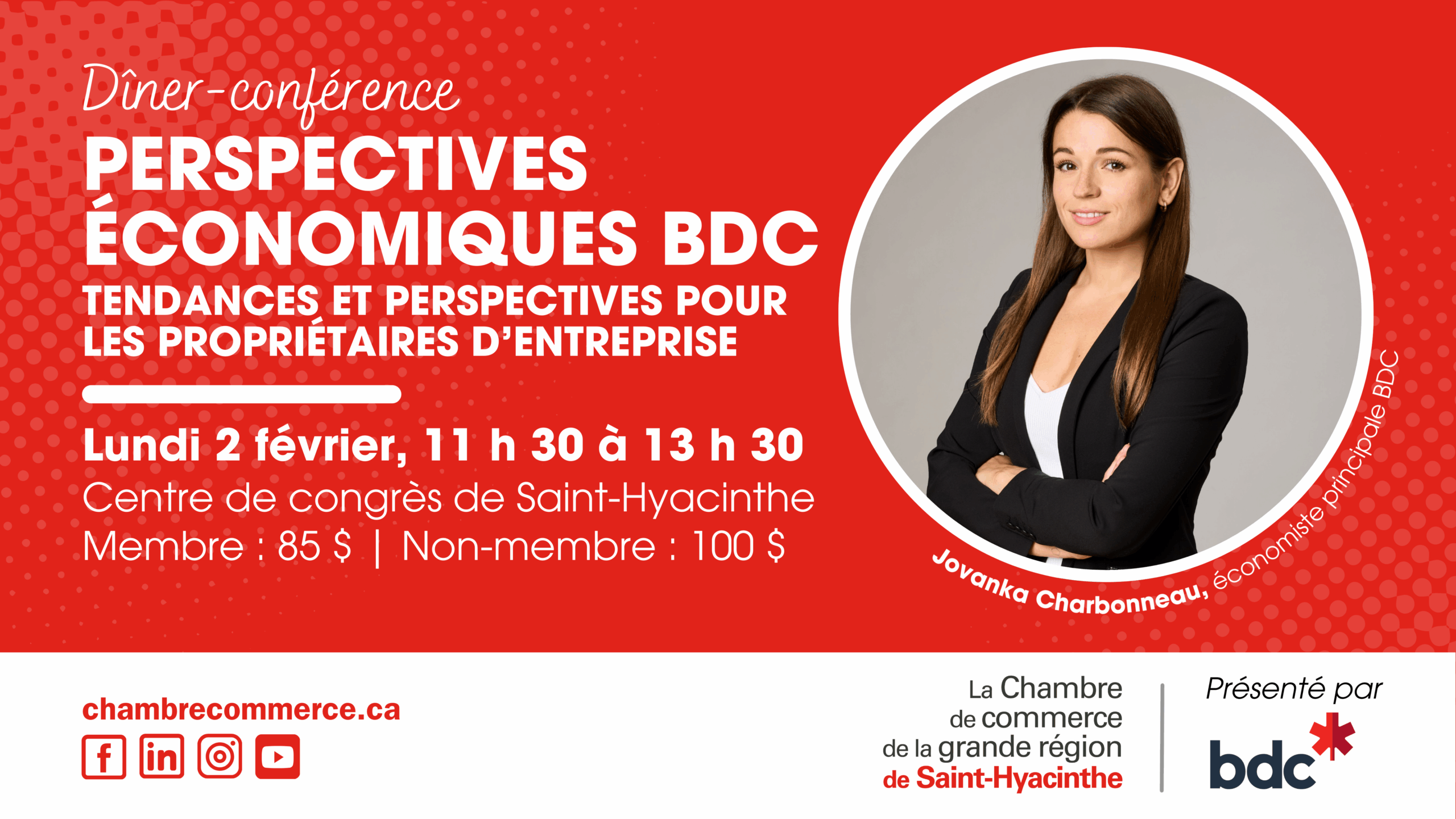 Joignez-vous à nous pour une présentation éclairante sur les perspectives économiques par Jovanka Charbonneau, économiste principale à BDC. Voyez comment l’économie canadienne évolue et découvrez les tendances qui façonnent notre environnement d’affaires.