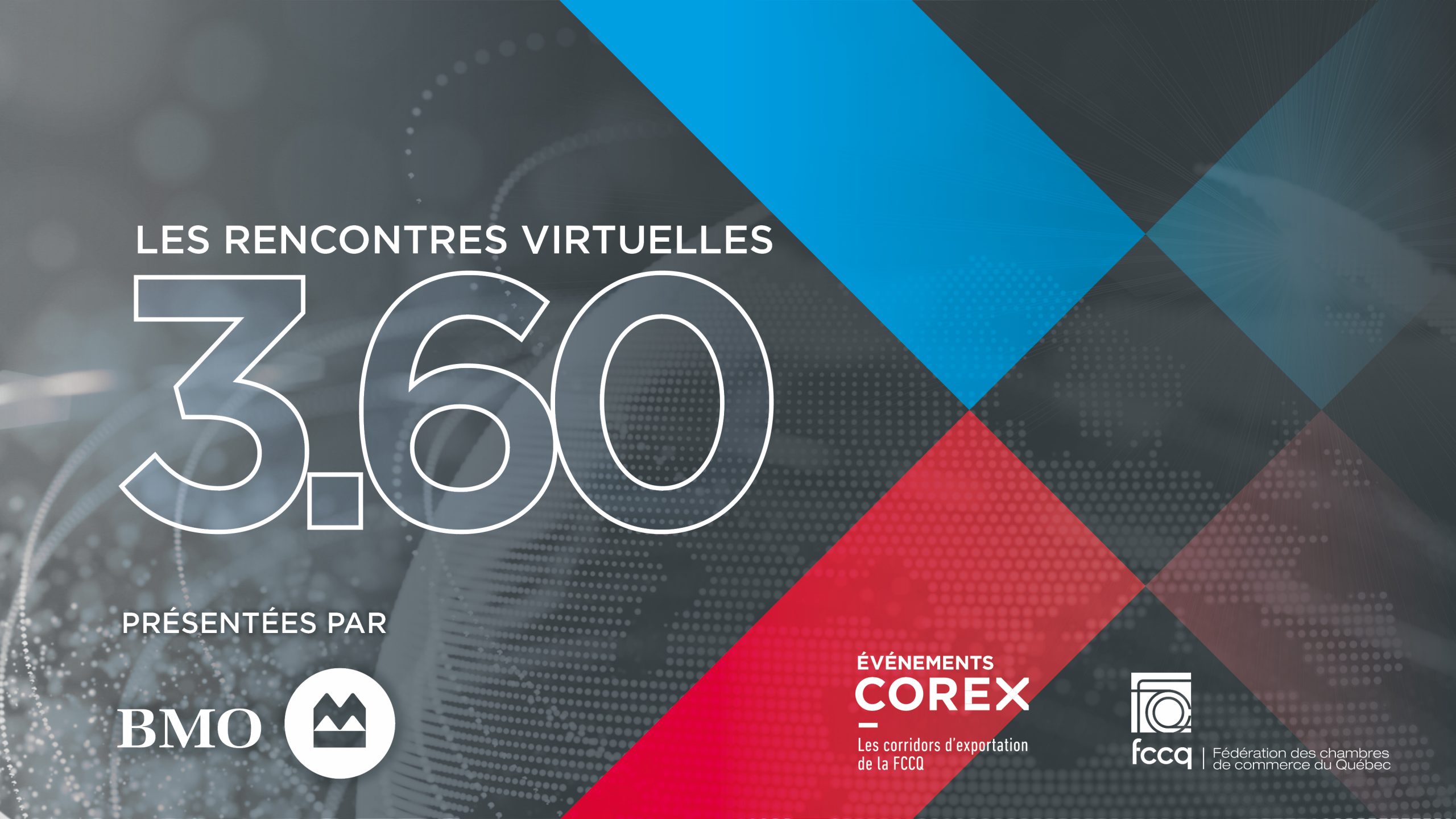 Les rencontres virtuelles 3.60 COREX, présentées en collaboration avec le réseau des chambres de commerce du Québec, visent à fournir aux dirigeants et chefs d’entreprise de l’information stratégique et des conseils judicieux pour les aider à s’adapter au nouvel environnement d’affaires dans lequel ils seront appelés à évoluer à l’échelle nationale et internationale. Durant 60 minutes, intervenants de premier ordre, acteurs politiques, dirigeants et chefs d’entreprises, feront le tour de questions d’intérêt pour surmonter la crise de la COVID-19 et saisir les nouvelles opportunités qui pourraient en découler.