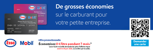 Économisez 8¢ par litre* (pour un temps limité), pour les nouvelles demandes pour le programme Carte d’affaires Première Plus, qui seront effectuées en ligne. De plus, les membres peuvent bénéficier de la carte Esso, qui offre un programme complet de gestion des besoins en matière de véhicule.